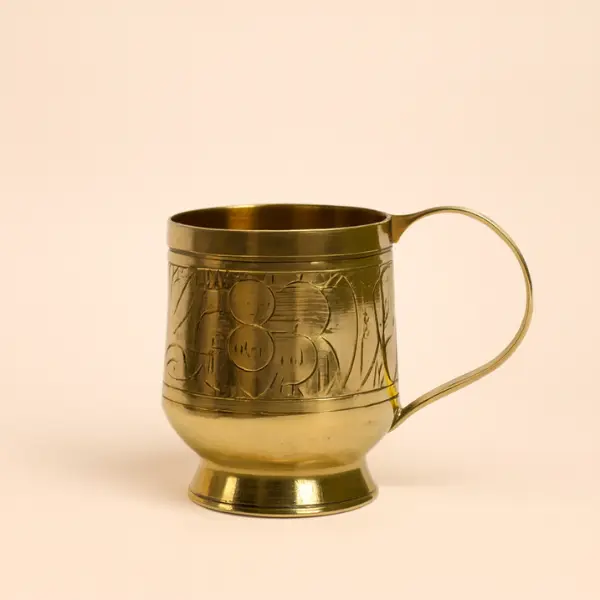 Start every day with the golden glow of tradition using the Pure Brass Mug—a timeless beauty meets Ayurvedic wellness in one handcrafted masterpiece. Standing 3.8 inches tall and 4 inches wide (with handle), this compact yet regal mug is forged from 100% solid brass and adorned with intricate hand-engraved floral and traditional motifs that wrap all around the body. The sturdy pedestal base and generous curved handle give it perfect balance and a luxurious feel in hand.