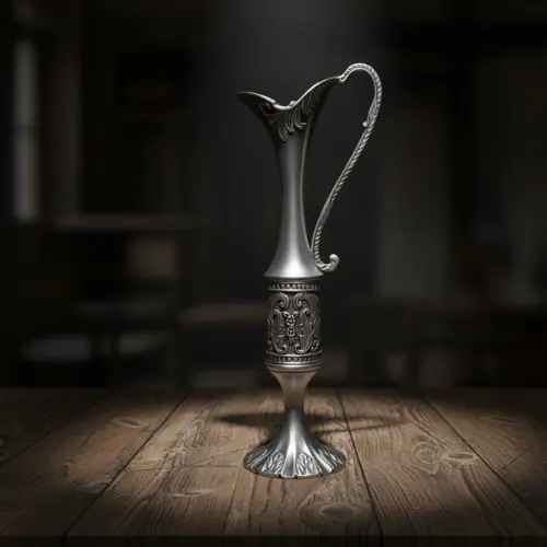 Infuse your home with the sophisticated whisper of bygone eras with the European Retro Vase, a captivating fusion of Art Nouveau elegance and timeless metallurgical artistry that elevates any interior to gallery-worthy heights. Standing at 10 inches tall and 4 inches wide, this handcrafted metal masterpiece boasts a slender, elongated form with a flared spout and graceful handle, finished in a lustrous silver tone that gleams with antique allure. Intricate floral engravings—delicate vines, leaves, and blooming motifs—adorn the body, wrapping around a textured band at the midsection, while the ornate pedestal base with scrolling feet adds a touch of regal stability, evoking the opulent drawing rooms of 19th-century Europe.